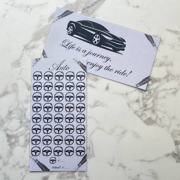 Rijd je spaardoel tegemoet! Voeg een bedrag toe, kleur de bijbehorende symbolen in en zie je spaargeld groeien richting een APK, nieuwe auto of ander autodoel!