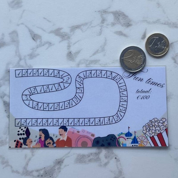 Spaar voor jouw fun times! Voeg geld toe, kleur de bijbehoordende vakjes in en werk toe naar een leuk uitje, een fijne ervaring of een herinnering om nooit te vergeten.