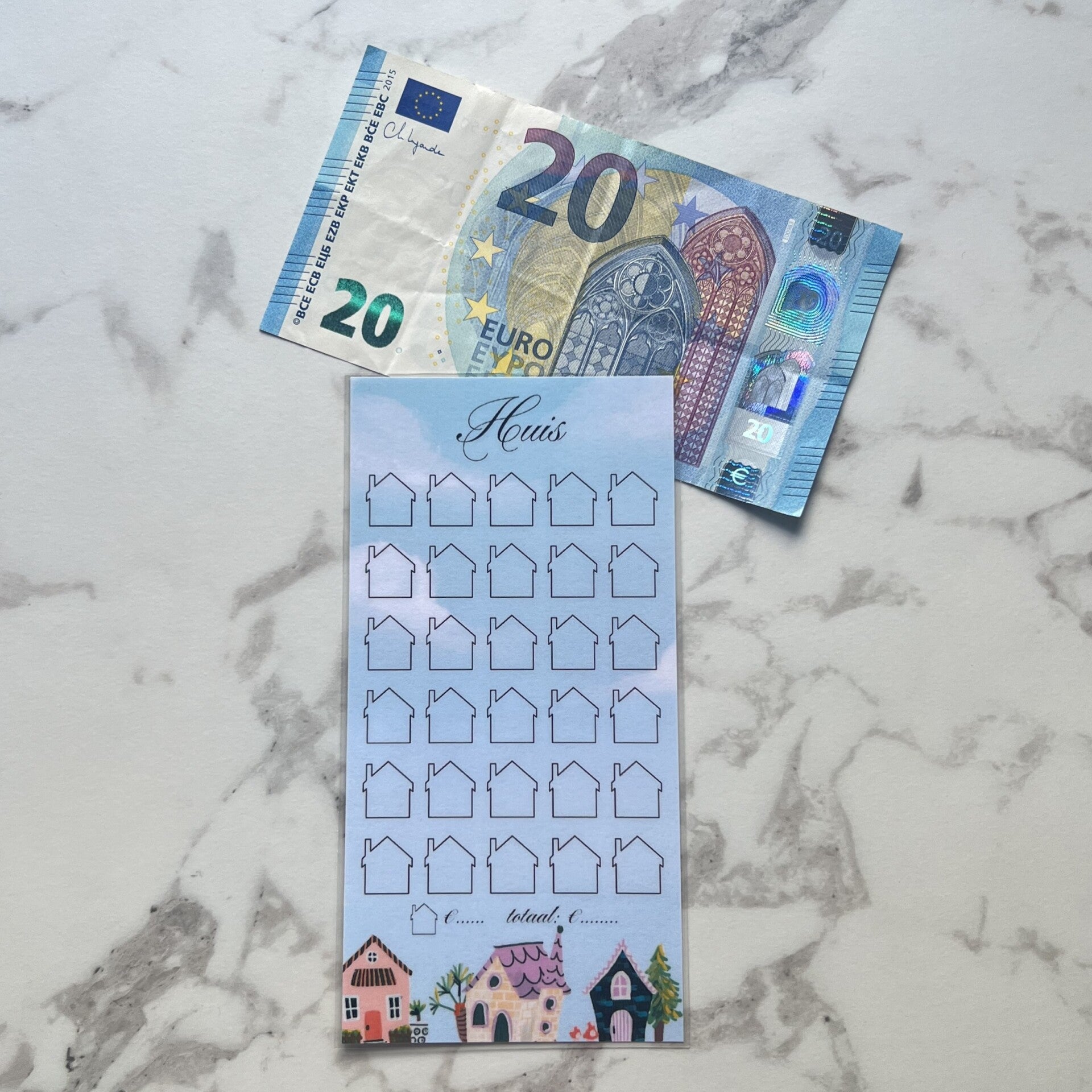 Spaar voor je droomhuis! Voeg geld toe, kleur de bijbehorende huisjes in en zie stap voor stap je spaargeld groeien voor een huis vol comfort, gezelligheid en alles wat jouw plek perfect maakt.