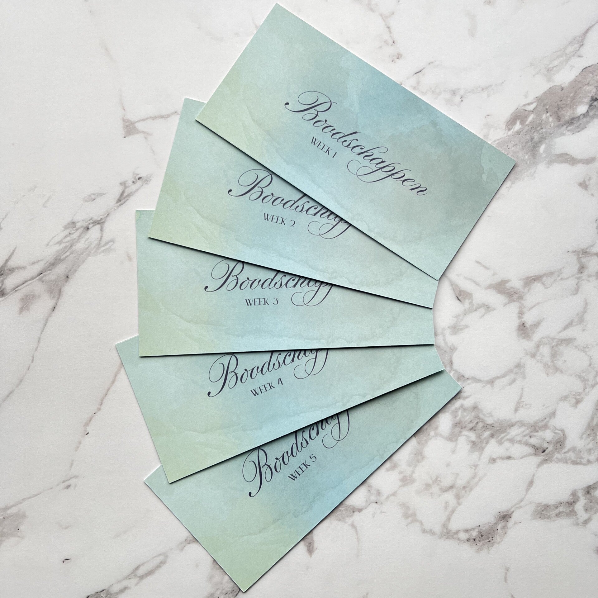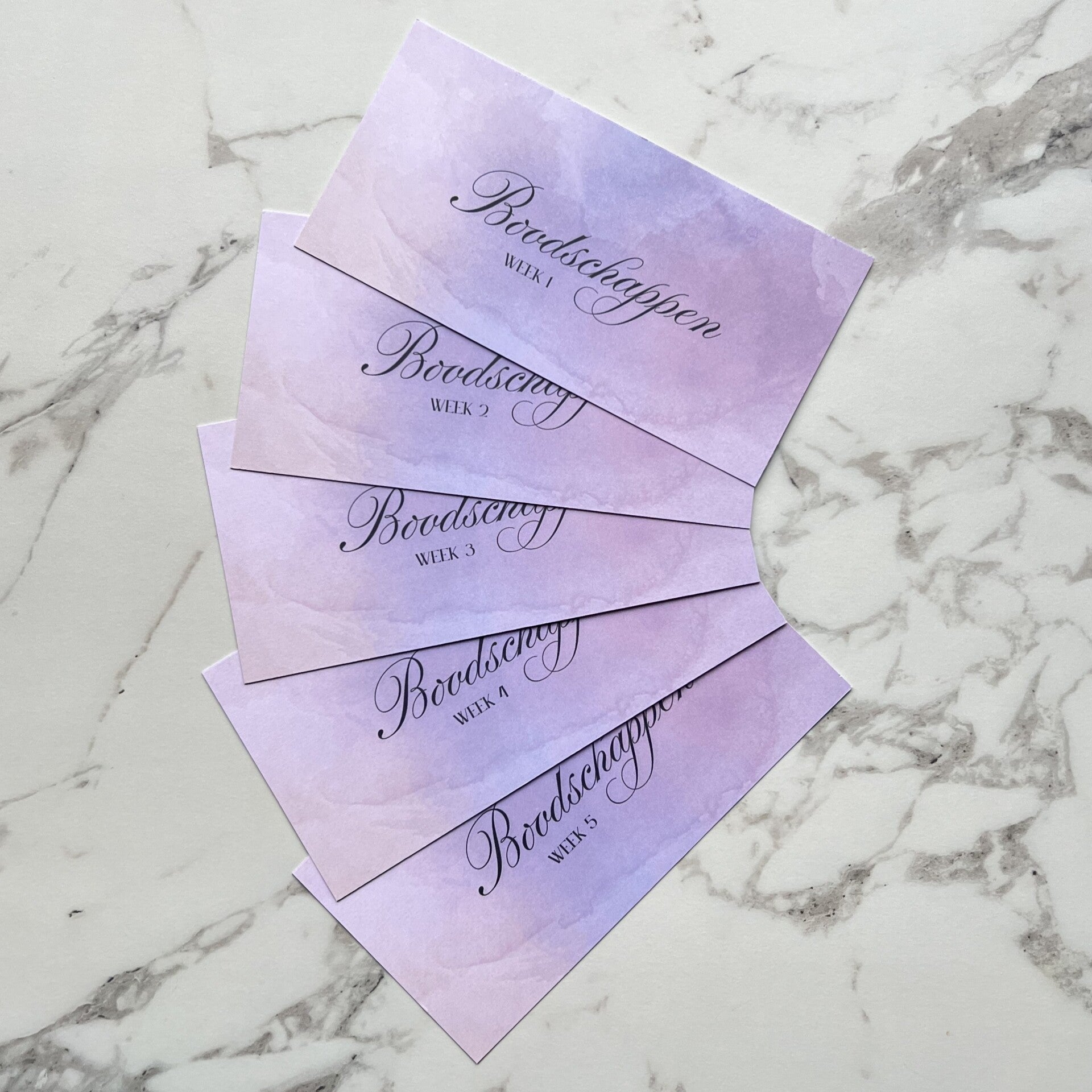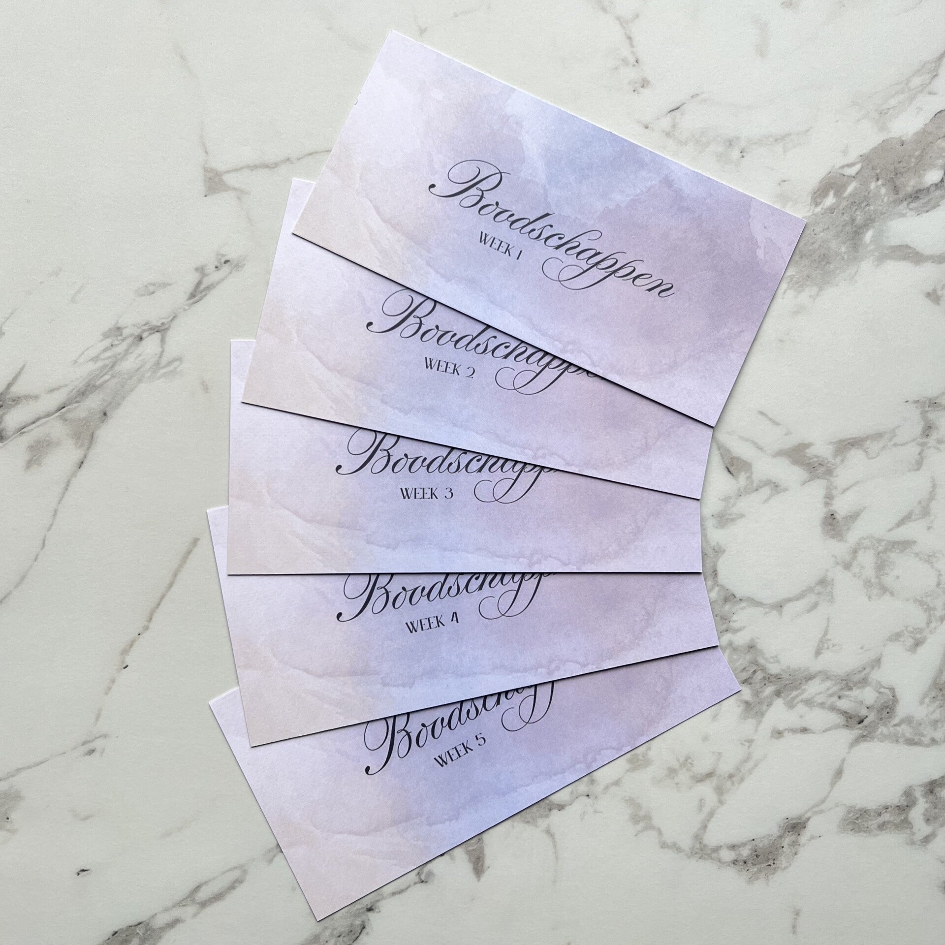 Plan je wekelijkse boodschappenbudget met de 5 weken Cash Boards! Zet per categorie je maximale budget en stop het geld in de bijbehorende mapjes, zo houd je eenvoudig grip op je uitgaven.
