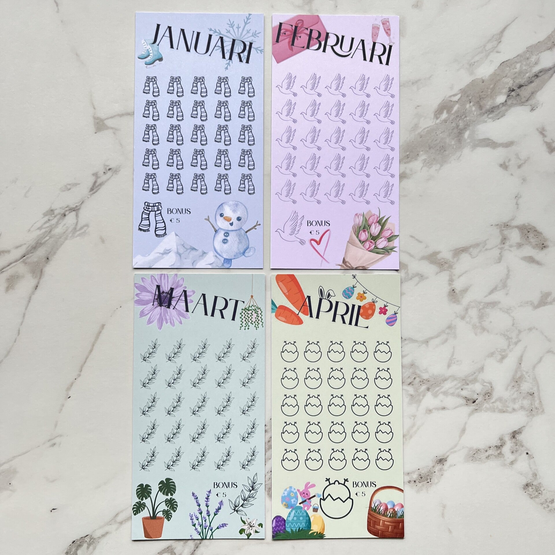 * LET OP: Alle cash boards, budget sheets en challenges zijn gedrukt op 300 grams papier. Deze producten worden niet gelamineerd geleverd.